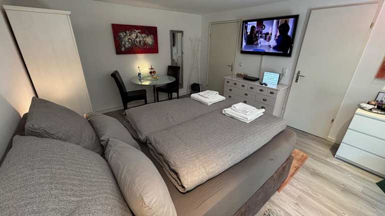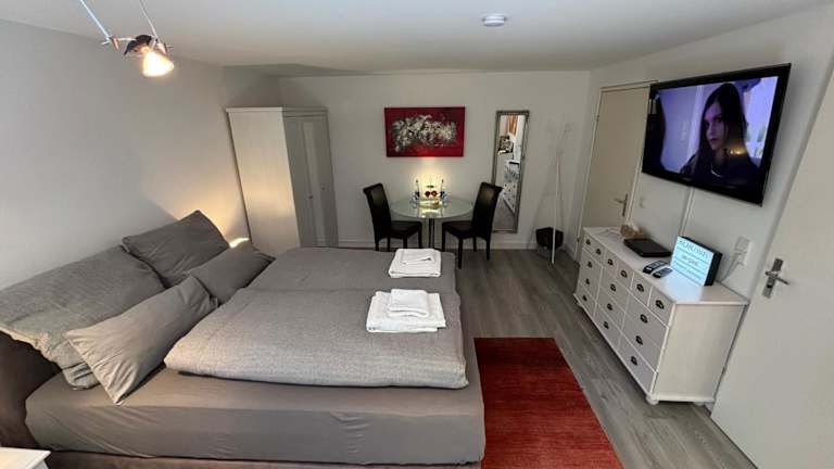 Die Unterkunft befindet sich in Stuttgart-Birkach und bietet eine gute Anbindung an zahlreiche Sehenswürdigkeiten. In der Nähe liegen das SI-Zentrum, die Neue Messe Stuttgart (6 km entfernt) sowie das Staatstheater (10 km entfernt). Der Flughafen Stuttgart ist 5 km von der Unterkunft entfernt, was eine bequeme Anreise ermöglicht. Stuttgart Hauptbahnhof liegt ebenfalls 10 km entfernt, und die Porsche-Arena ist 11 km entfernt.