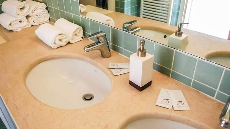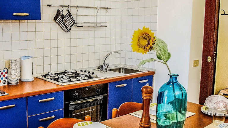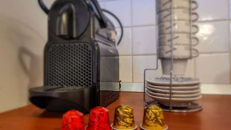 Die Ferienwohnung besteht aus einem Schlafzimmer, einem Wohnzimmer und einer voll ausgestatteten Küche, die mit einem Kühlschrank und einer Kaffeemaschine ausgestattet ist. Zudem gibt es ein Badezimmer mit Bidet und Dusche. Handtücher und Bettwäsche werden zur Verfügung gestellt.