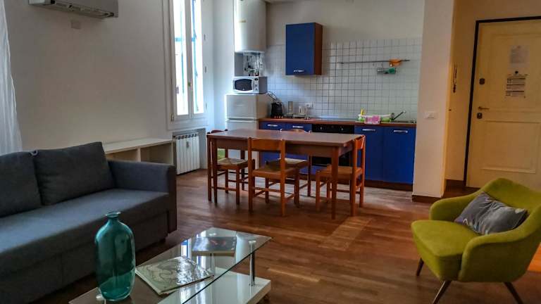 Die Unterkunft befindet sich im Bezirk Dorsoduro in Venedig, in der Nähe der Basilica dei Frari (700 m) und der Scuola Grande di San Rocco (600 m). Der Bahnhof Venedig Santa Lucia ist 900 m entfernt, während die Rialtobrücke in 1,6 km und Ca’ d’Oro in 2,2 km Entfernung liegen. Der Flughafen Venedig Marco Polo befindet sich 13 km entfernt, mit einem kostenpflichtigen Flughafentransfer.