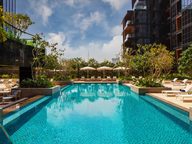 Unser Hotel bietet eine abwechslungsreiche Auswahl an Restaurants und Cafés für jeden Geschmack. LARTE serviert moderne italienische Küche in einem stilvollen, zweistöckigen Ambiente – ideal für Pizza, Pasta und frisch gebackene Leckereien. The Spice Tree bietet kreative indische Urban-Fusion-Gerichte mit kräftigen Aromen und innovativen Präsentationen. Für entspannte Momente am Pool sorgt Sunglo 19 mit leichten Snacks, Burgern und erfrischenden alkoholfreien Drinks sowie einem beeindruckenden Skyline-Blick. Sunglo M ist ein weiterer Poolbereich, an dem Gäste frische Mocktails und Snacks genießen können. Egal ob Frühstück, Mittag- oder Abendessen – unsere Restaurants verbinden Geschmack, Qualität und ein einladendes Ambiente für jeden Anlass.