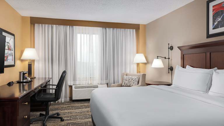 Die Zimmer im DoubleTree by Hilton Cincinnati Airport sind komfortabel und modern eingerichtet. Jedes Zimmer verfügt über einen Flachbild-LCD-TV mit Filmen im Zimmer, einen Schreibtisch und eine Kaffeemaschine. Die Gäste können sich auf einen angenehmen Aufenthalt freuen.