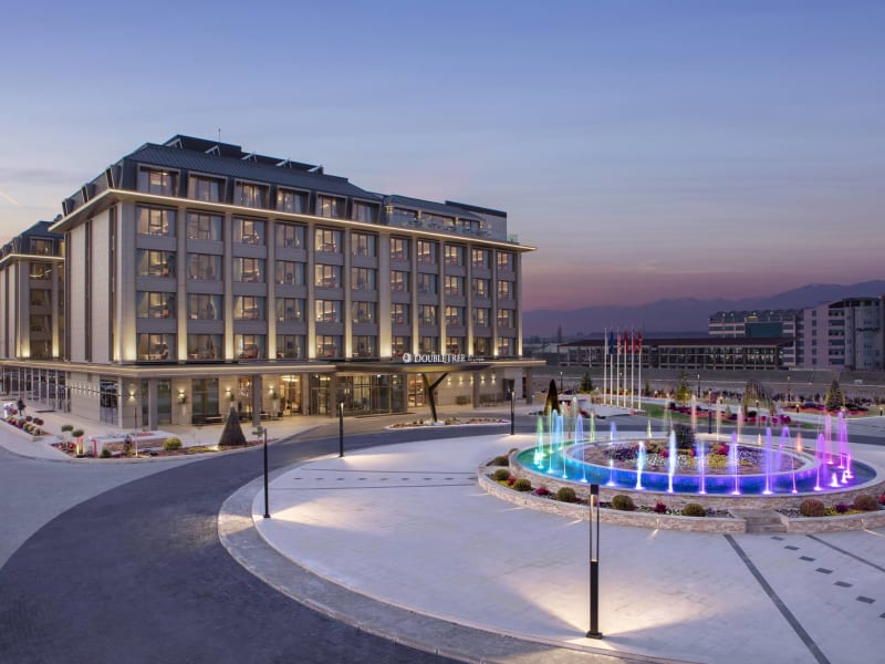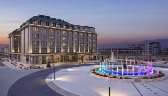 Das DoubleTree by Hilton Skopje liegt am Fluss Vardar und befindet sich nur 10 Fahrminuten vom Stadtzentrum entfernt. Es ist in einer ruhigen Umgebung positioniert, bietet jedoch eine gute Anbindung zu verschiedenen Verkehrspunkten, einschließlich 15 km zum Flughafen, 2 km zum internationalen Busbahnhof und Bahnhof sowie 800 m zur Capitol Mall.