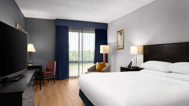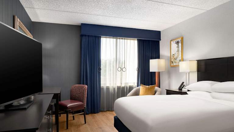 Die Zimmer im DoubleTree by Hilton Bradley International Airport sind modern und komfortabel eingerichtet. Jedes Zimmer verfügt über Annehmlichkeiten wie einen 37-Zoll-Kabel-TV, eine MP3-Dockingstation und einen Schreibtisch. Die Badezimmer sind gut ausgestattet und bieten Designer-Pflegeprodukte.