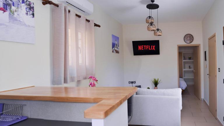 Das Apartment im Dounavis Homes: The Hidden Olive bietet alles, was Sie für einen komfortablen Aufenthalt benötigen. Das klimatisierte Apartment verfügt über ein Schlafzimmer, in dem Sie sich nach einem ereignisreichen Tag entspannen können. Das Wohnzimmer bietet einen gemütlichen Raum zum Entspannen und einen Flachbild-TV für Unterhaltung. Die voll ausgestattete Küche ermöglicht es Ihnen, Ihre eigenen Mahlzeiten zuzubereiten und auf der Terrasse zu genießen. Handtücher und Bettwäsche werden gestellt, um Ihren Aufenthalt noch angenehmer zu gestalten.