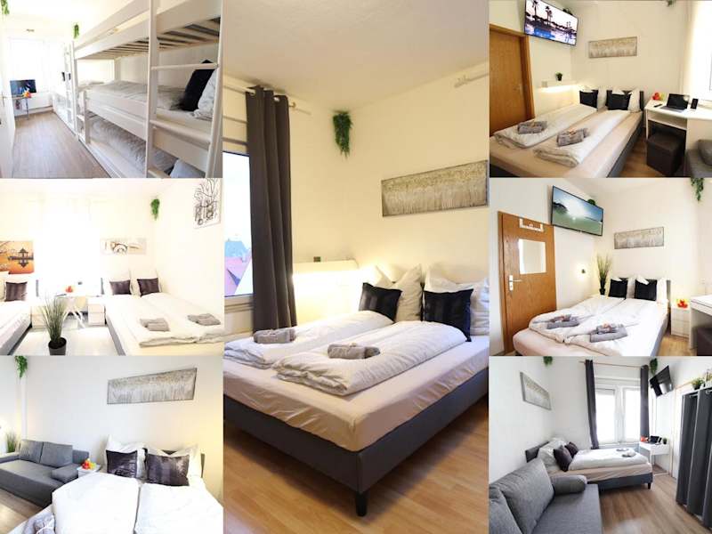 Die Zimmer sind ausgestattet mit Boxspringbetten, einem Schreibtisch, einem TV, einem Wasserkocher und einem eigenen Badezimmer mit Dusche und Haartrockner. Einige Zimmer verfügen über eine Küche mit Mikrowelle. Alle Gästezimmer sind mit einem Kühlschrank ausgestattet.