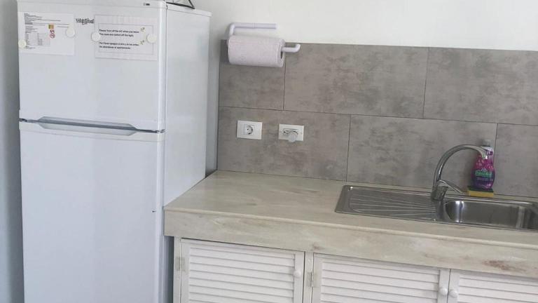 Die Apartments sind mit einer voll ausgestatteten Küche versehen, die einen Kühlschrank, eine Mikrowelle, eine Herdplatte, einen Toaster, eine Kaffeemaschine und einen Wasserkocher umfasst.