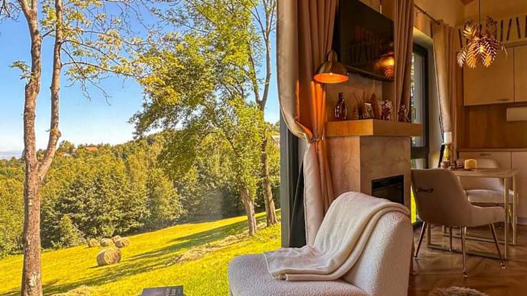 Die Unterkunft bietet Zimmer mit Bergblick, einem Sitzbereich, einem Flachbild-TV und einer voll ausgestatteten Küche mit Kühlschrank und Minibar. Jedes Zimmer verfügt über ein eigenes Badezimmer mit Dusche, Whirlpool und kostenlosen Pflegeprodukten. Ein Haartrockner ist ebenfalls vorhanden.