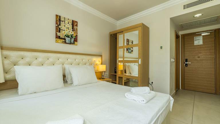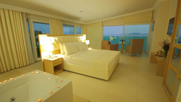 Die klimatisierten Zimmer im Hotel Dragut Point North sind komfortabel eingerichtet und bieten kostenloses WLAN, einen Kühlschrank und einen Flachbild-Sat-TV. Das eigene Bad ist mit einer Dusche und einem Haartrockner ausgestattet. Einige Zimmer bieten zudem Meerblick und einen Safe.