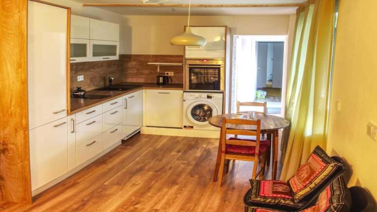 Die Ferienwohnung umfasst ein Schlafzimmer und ist ausgestattet mit einem Flachbild-TV. Die voll ausgestattete Küche bietet einen Kühlschrank, einen Geschirrspüler, eine Waschmaschine, einen Ofen sowie eine Herdplatte.