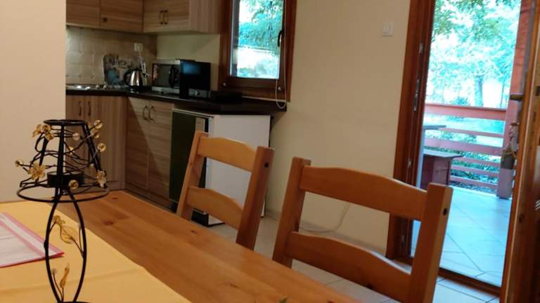Die Unterkunft verfügt über komfortable Zimmer mit kostenfreiem WLAN, einem TV und einer Terrasse oder Veranda. Jedes Zimmer verfügt über einen Essbereich und eine Küchenzeile mit einer Mikrowelle, einem Kühlschrank, einem Kochfeld und einem Wasserkocher. Das private Badezimmer ist mit einer Dusche ausgestattet und Handtücher werden gestellt.