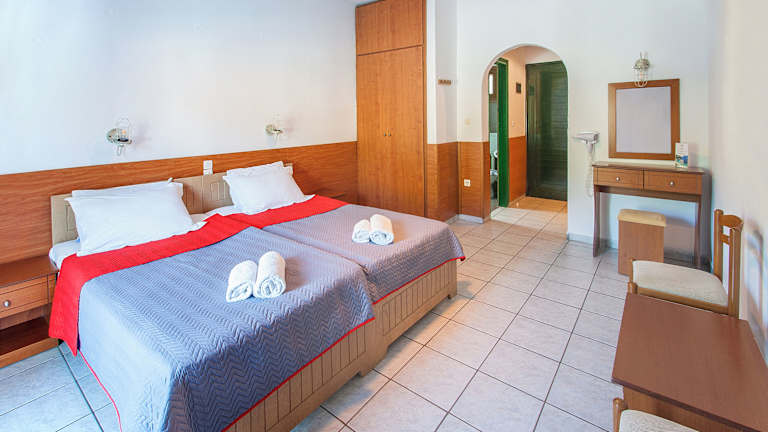 Die Zimmer sind ausgestattet mit einer Klimaanlage, die individuell geregelt werden kann, sowie einer zentral steuerbaren Heizung. Zu den Annehmlichkeiten zählen ein Balkon in den meisten Zimmern, eine Kochnische mit Kühlschrank und Tee-/Kaffeemaschine, eine Waschmaschine, ein Bügelset sowie ein Telefon und ein TV-Gerät. Im Badezimmer gibt es eine Dusche oder Badewanne und einen Haartrockner. Es sind Nichtraucherzimmer vorhanden.
