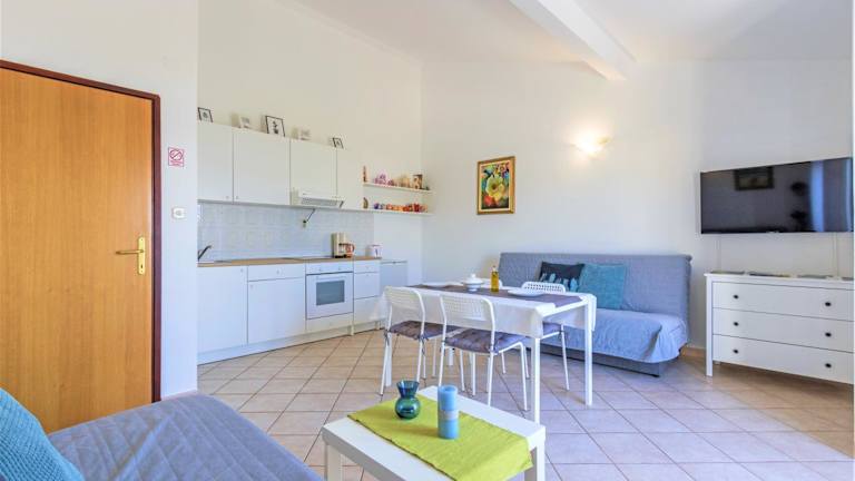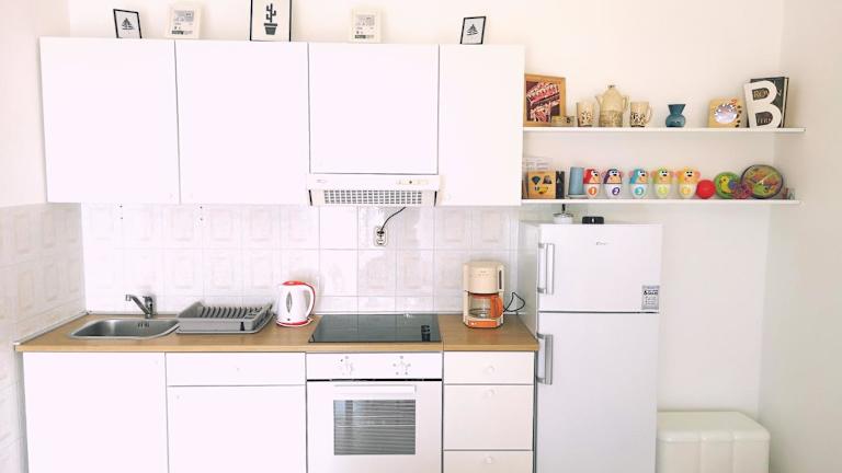 Die Ferienwohnung besteht aus einem Schlafzimmer, einem Wohnzimmer, einer voll ausgestatteten Küche mit Kühlschrank und Kaffeemaschine sowie einem Badezimmer mit Bidet und Dusche. Des Weiteren werden Handtücher und Bettwäsche bereitgestellt. Die Unterkunft ist klimatisiert und bietet Familienzimmer sowie Nichtraucherzimmer.