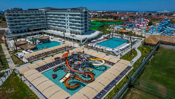 Das im Juni 2022 neu eröffnete Dream Water World liegt in ruhiger Lage aber dennoch Zentral. Ein freistehende modern gestaltetes, neu gebaute Hotel für Jung und Alt. Wasserratten werden hier voll auf ihre Kosten kommen. Durch eine großzügig angelegte Poollandschaft und die großen modernen Aqua Parks*. (insgesamt 35 Rutschen) Aber nicht nur Adrenalin Junkies werden hier ein neues Lieblings Hotel finden, sondern auch die, die gerne ihre Ruhe haben! Ein kostenloser Shuttle wird sie in regelmäßigen Abständen zum Strand bringen und natürlich auch wieder zurück. Verbringen Sie ihren Tag an einem der schönsten Strandabschnitte der Türkei. Beach und Snack Bar stehen dort für sie zur Verfügung. Für Shopping begeisterte liegt das Einkaufsmekka von Kumköy nur einen Steinwurf entfernt und für die Kultur hungrigen sind es nur gerade mal 5 Kilometer zur berühmten Halbinsel von Side. Aber auch andere historischen Stätten befinden sich ganz in der Nähe. Manavgat mit seinem Wasserfall und dem grünen Fluss sind mit den öffentlichen Verkehrsmittel, die in unmittelbarer Umgebung zu erreichen sind, in kürzester Zeit (15 Kilometer) erreichbar. Kommen sie als Gast und gehen sie als Freund. Dream Water World lässt sie ihre Träume wahr werden. *Aqua Park und Aqua Tower Saison 15.04. - 15.10. - davor und danach Wind und Wetter abhängig. Mindestgröße für den Aqua Park 1,20m Das benutzen des Aqua Parks ist auf eigene Gefahr.