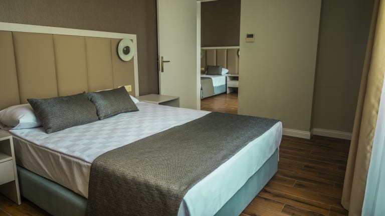 Single, Standard und Familienzimmer, modern und zweckmäßig eingerichtet. Familienzimmer bis zu 5 Personen. Ausgestattet mit zentral gesteuerter Klimaanlage, Flachbildschirm (deutsche Kanäle und Musik Kanal), Badezimmer mit bodentiefer Dusche und Föhn. In allen unseren Zimmern und im gesamten Hotelbereich haben sie freien Wifi Zugang. Alle unsere Zimmer haben einen Balkon. Neu im Programm gibt es die Familiensuiten für bis zu 5 Personen mit 2 Badezimmer.