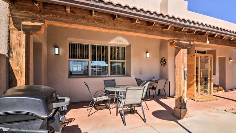 Das Dreamcatcher Cliffs Home Near Dtwn Kanab liegt in der malerischen Stadt Kanab. Die Umgebung bietet zahlreiche Outdoor-Aktivitäten wie Wandern, Radfahren und Erkundungstouren in der Natur. Die Unterkunft befindet sich in der Nähe des Stadtzentrums, sodass Sie bequem lokale Geschäfte, Restaurants und Sehenswürdigkeiten erkunden können. Mit seiner günstigen Lage ist das Ferienhaus der perfekte Ausgangspunkt, um die Schönheit von Kanab und der umliegenden Region zu entdecken.