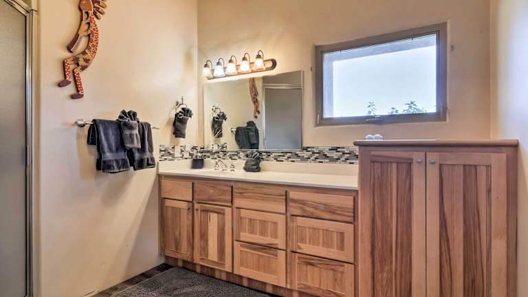 Das Dreamcatcher Cliffs Home Near Dtwn Kanab bietet geräumige und komfortable Unterkünfte für Ihren Aufenthalt. Das klimatisierte Ferienhaus verfügt über 3 Schlafzimmer, in denen Sie sich nach einem ereignisreichen Tag erholen können. Das Haus ist mit Kabel-TV ausgestattet, damit Sie Ihre Lieblingssendungen und Filme genießen können. Die voll ausgestattete Küche ermöglicht es Ihnen, Ihre eigenen Mahlzeiten zuzubereiten und sich wie zu Hause zu fühlen. Handtücher und Bettwäsche werden gestellt, um Ihren Aufenthalt so bequem wie möglich zu gestalten.
