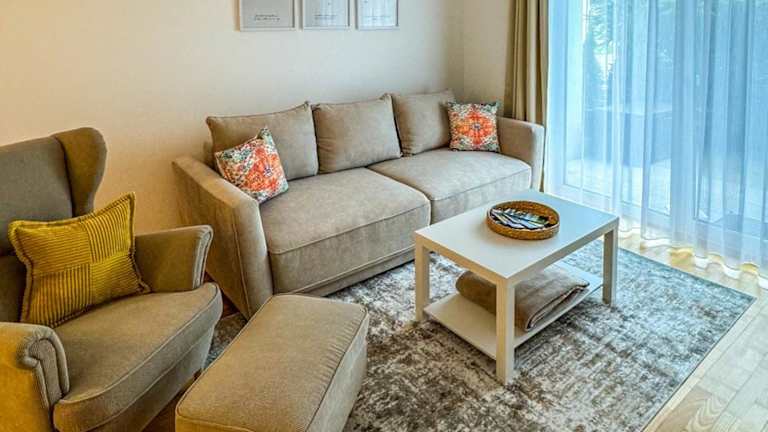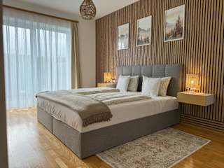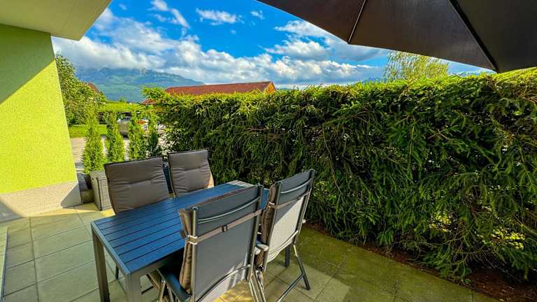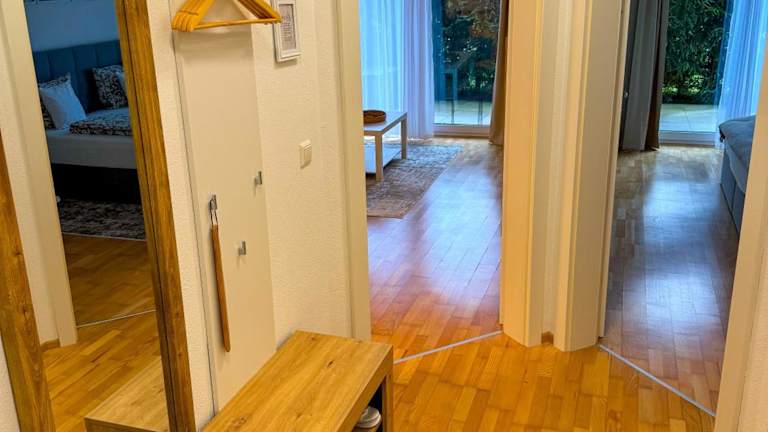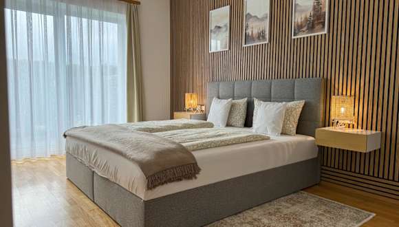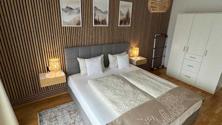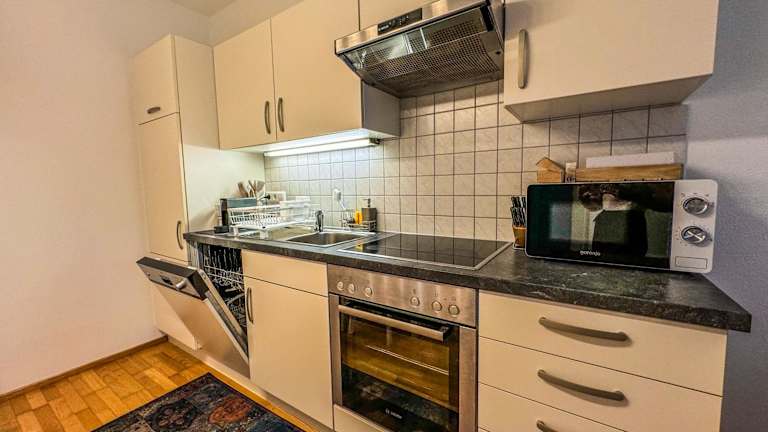 Die Ferienwohnung umfasst ein Schlafzimmer, ein Wohnzimmer, einen Flachbild-TV und eine gut ausgestattete Küche mit Kühlschrank und Geschirrspüler. Das Badezimmer ist mit einer Badewanne oder Dusche ausgestattet. Handtücher und Bettwäsche werden bereitgestellt, und die Unterkunft bietet zudem eine Terrasse mit Bergblick.