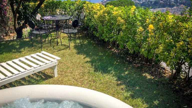 Dreamy LOFT con vista sul golfo giardino e Jacuzzi bietet eine Ferienwohnung mit einem Garten und einer Terrasse, ideal für entspannende Aufenthalte. Die Unterkunft ist klimatisiert und verfügt über ein Schlafzimmer sowie ein Badezimmer.