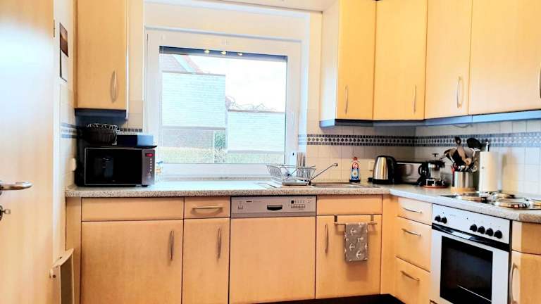 In der gut ausgestatteten Küchenzeile der Ferienwohnung finden sich ein Kühlschrank und ein Geschirrspüler, was die Selbstverpflegung ermöglicht. Informationen zu lokalen Restaurants oder anderen Verpflegungsmöglichkeiten sind nicht vorhanden.