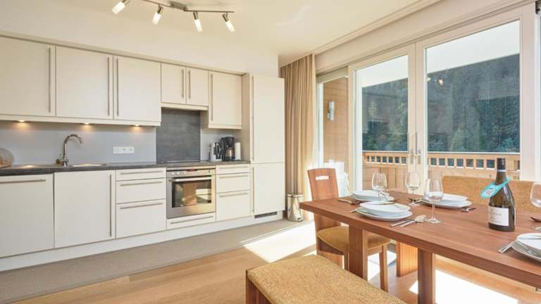 Die Ferienwohnung umfasst drei Schlafzimmer, ein Wohnzimmer, eine voll ausgestattete Küche mit Kühlschrank und Kaffeemaschine sowie zwei Badezimmer, die jeweils mit Dusche und Badewanne ausgestaltet sind. Handtücher und Bettwäsche werden zur Verfügung gestellt.