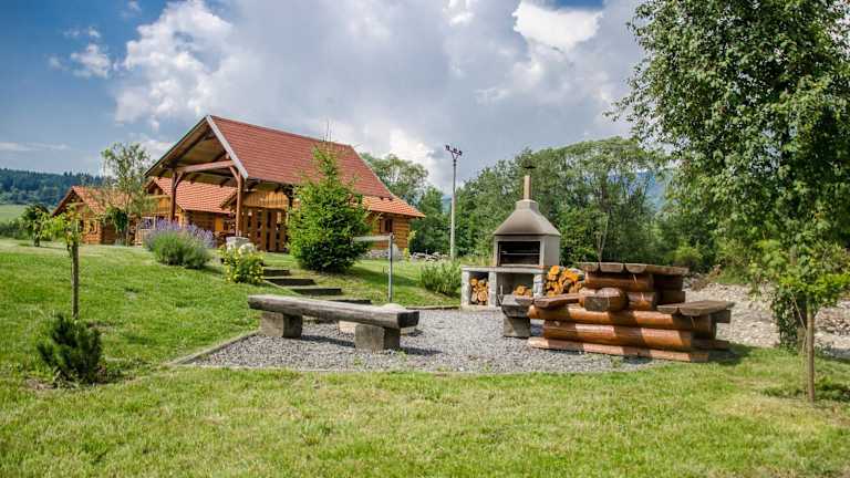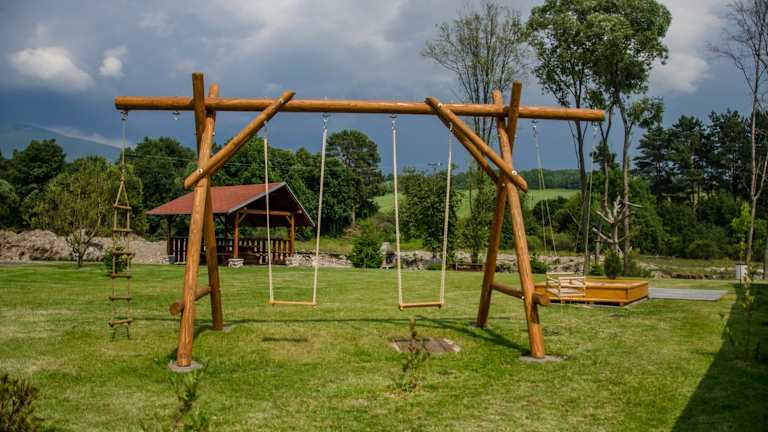 Drevenice TriMount bietet traditionelle Holz-Cottages, die sich durch ihren rustikalen Stil auszeichnen. Die Anlage umfasst einen Pavillon mit Grillmöglichkeiten und bietet Gästen eine kostenlose Liptov Region Card, die Ermäßigungen für Sehenswürdigkeiten und Skipässe ermöglicht.