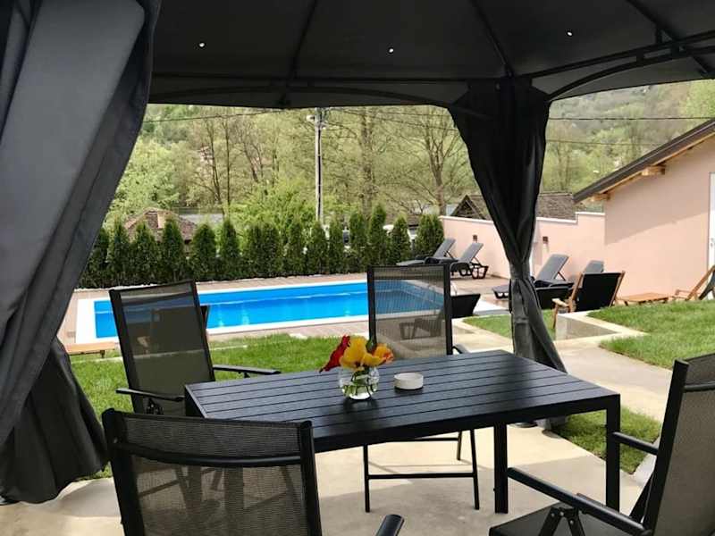 Das Drinska Idila apartmani in Vrhpolje ist die perfekte Wahl für Reisende, die eine komfortable und gut ausgestattete Unterkunft inmitten einer idyllischen Umgebung suchen. Mit klimatisierten Apartments, kostenfreiem WLAN und einem Außenpool bietet das Hotel alles, was man für einen entspannten Aufenthalt benötigt. Genießen Sie den Blick auf die Berge von der Terrasse aus und nutzen Sie die voll ausgestattete Küche, um Ihre eigenen Mahlzeiten zuzubereiten. Der Balkon mit Flussblick lädt zum Entspannen ein und für die kleinen Gäste gibt es einen Kinderspielplatz. Der internationale Flughafen Tuzla ist nur 91 km entfernt.