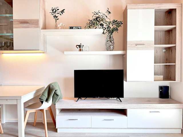 Die Ferienwohnung besteht aus einem Schlafzimmer, einem Wohnzimmer und einer voll ausgestatteten Küche, die mit einem Kühlschrank und einer Kaffeemaschine ausgestattet ist. Des Weiteren verfügt sie über ein Badezimmer mit einem Bidet und einer Dusche. Handtücher und Bettwäsche werden bereitgestellt.