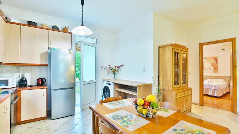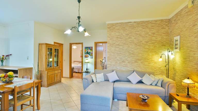 Das Ferienhaus umfasst 2 Schlafzimmer und ein Wohnzimmer sowie eine vollständig eingerichtete Küche, die mit einem Kühlschrank und einer Kaffeemaschine ausgestattet ist. Es stehen 2 Badezimmer zur Verfügung, die jeweils mit einer Dusche und einem Haartrockner ausgestattet sind. Handtücher und Bettwäsche werden bereitgestellt.