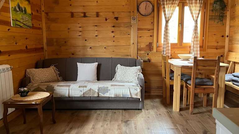 Das Hotel Drveni raj Uvac in Sjenica ist der perfekte Ort, um einen erholsamen Urlaub mit Seeblick zu verbringen. Mit kostenfreiem WLAN und Privatparkplätzen bietet das Hotel eine komfortable Unterkunft mit allen Annehmlichkeiten, die Sie für einen angenehmen Aufenthalt benötigen. Genießen Sie die Terrasse mit Bergblick, den Flachbild-Sat-TV und die gut ausgestattete Küche in jeder Wohneinheit. Der Garten mit Grillmöglichkeiten lädt zum Entspannen ein, während Sie in der Nähe wandern und angeln können. Der Flughafen Morava ist nur 135 km entfernt.