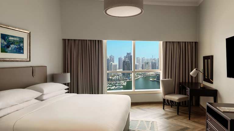 Das Dubai Marriott Harbour Hotel & Suites bietet eine malerische Aussicht auf die Stadt und umfasst 261 Zimmer, die in einem modernen Rahmen gestaltet sind. Es stehen verschiedene Dienstleistungen zur Verfügung, darunter ein 24-Stunden-Sicherheitsdienst, ein Babysitterservice und ein Transferservice. Zur weiteren Ausstattung zählen ein Garten, ein Spielzimmer sowie ein Business-Center. Gäste können in der Garage parken (gegen Gebühr) und die Unterkunft bietet behindertengerechte Einrichtungen. Außerdem wird den Gästen Hilfestellung bei der Buchung von Ausflügen durch einen Tourdesk geboten.