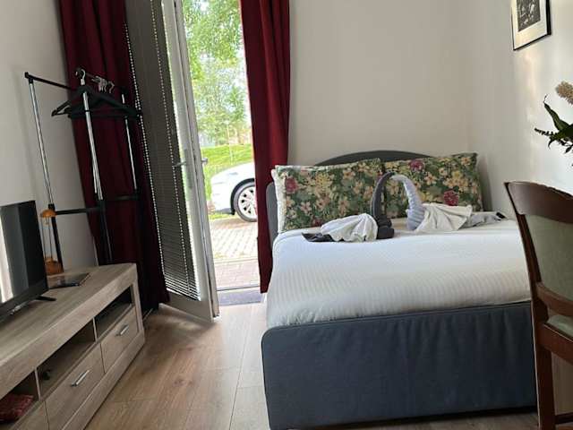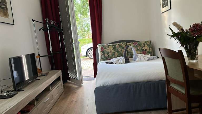 Das Privatzimmer in Dubbelink 3A ist mit einem Kabel Flachbild-TV ausgestattet. Handtücher und Bettwäsche sind im Angebot enthalten.