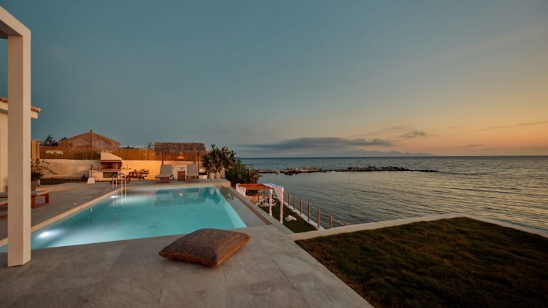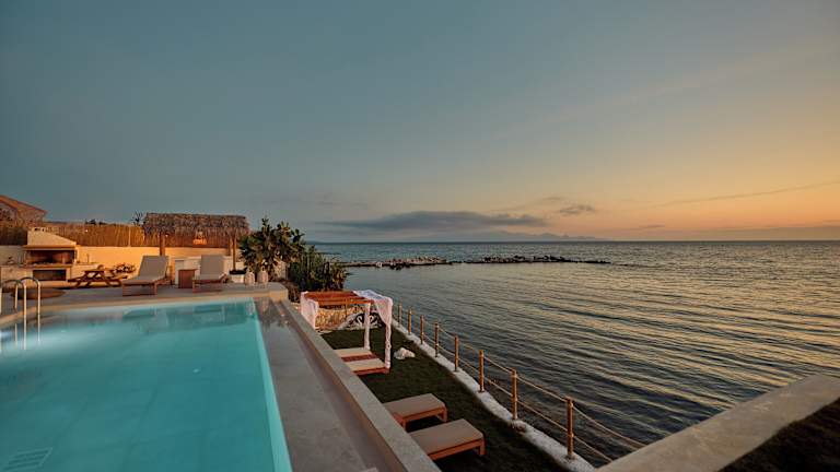 Die Villa bietet einen saisonalen Außenpool, in dem Sie sich an warmen Tagen erfrischen können. Entspannen Sie im Garten oder auf der Terrasse und genießen Sie den atemberaubenden Meerblick. Die Unterkunft verfügt auch über einen eigenen Strandbereich, an dem Sie die Sonne und das Meer in vollen Zügen genießen können.