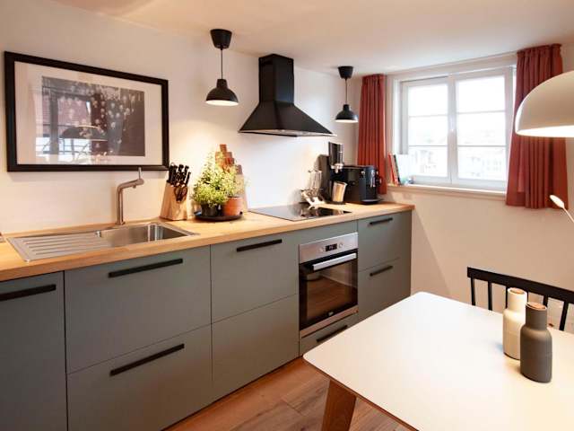 Die Ferienwohnung umfasst drei Schlafzimmer und ist mit einem Flachbild-TV ausgestattet. Eine voll ausgestattete Küche ermöglicht den Gästen die Nutzung von modernen Geräten wie einem Kühlschrank, Geschirrspüler, Waschmaschine, Ofen und Herdplatte. Handtücher und Bettwäsche werden gestellt.