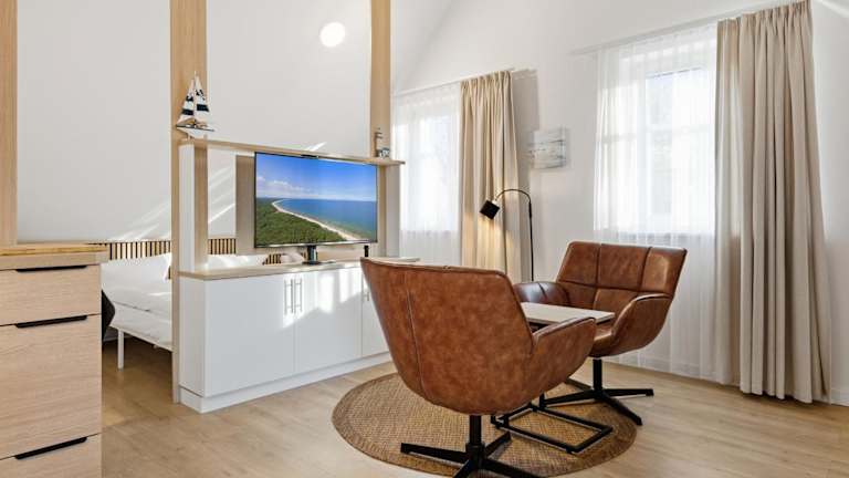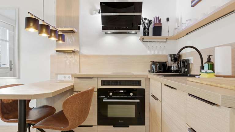 Die Ferienwohnung ist mit einem Wohnzimmer und einer voll ausgestatteten Küche ausgestattet, die über einen Kühlschrank und einen Geschirrspüler verfügt. Handtücher und Bettwäsche werden zur Verfügung gestellt. Die Zimmer sind Nichtraucherzimmer. Zudem sind Gartenmöbel vorhanden.