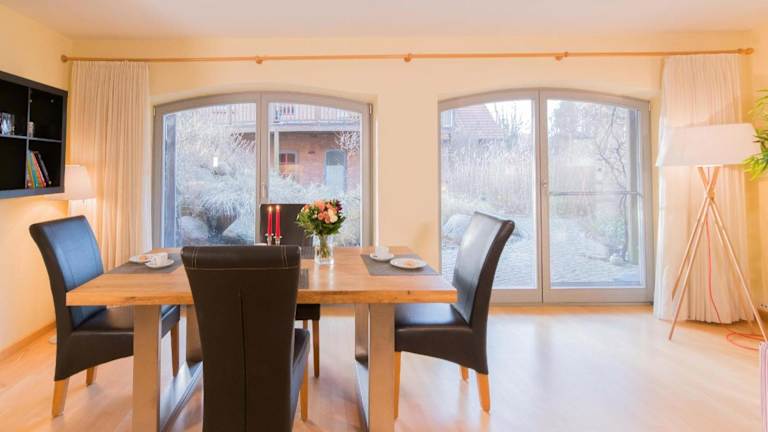 Dünenhof DÜNENHOF Whg. D-05 ist eine Ferienwohnung, die über eine Terrasse mit Gartenblick verfügt. Die Unterkunft zeichnet sich durch kostenfreies WLAN und einen Privatparkplatz aus. Es ist zu beachten, dass in der Unterkunft keine Feiern wie Junggesellen- oder Junggesellinnenabschiede gestattet sind.