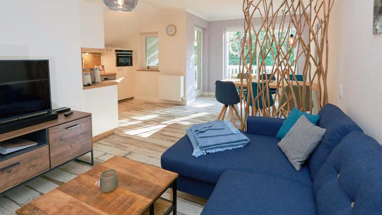 Dünenpark Binz - WG 40 "Strandgut" ist eine Ferienwohnung, die Unterkünfte mit Balkon und kostenlosem WLAN bereitstellt. Die Wohnung umfasst zwei Schlafzimmer, ein Wohnzimmer und eine voll ausgestattete Küchenzeile. Die Unterkunft ist modern und bietet verschiedene Annehmlichkeiten für einen komfortablen Aufenthalt.