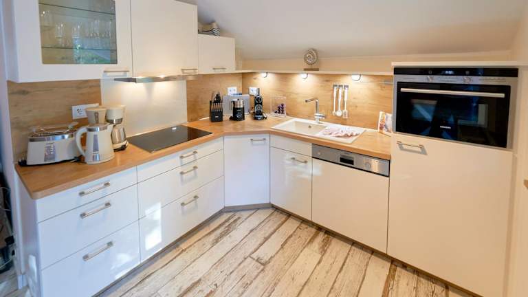 Die Ferienwohnung besteht aus zwei Schlafzimmern, einem Wohnzimmer und einer voll ausgestatteten Küchenzeile, die mit einem Kühlschrank und einer Kaffeemaschine ausgestattet ist. Das Badezimmer enthält eine Dusche sowie einen Haartrockner. Außerdem steht ein Flachbild-TV zur Verfügung.