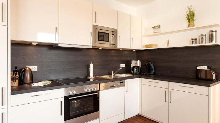 In der Ferienwohnung ist eine gut ausgestattete Küche vorhanden, die mit einem Kühlschrank, Geschirrspüler und Ofen ausgestattet ist. Informationen zu weiteren Verpflegungsmöglichkeiten liegen nicht vor.