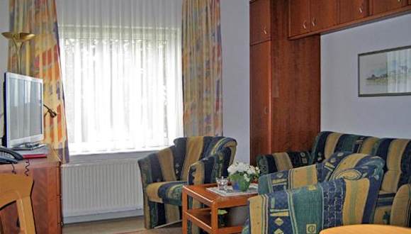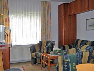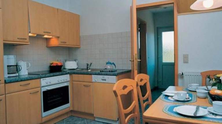 Die Ferienwohnung besteht aus einem separaten Schlafzimmer, einem Wohnzimmer und einer voll ausgestatteten Küche mit Geschirrspüler und Ofen. Das Badezimmer ist ebenfalls vorhanden. Es sind allergikerfreundliche Zimmer verfügbar.