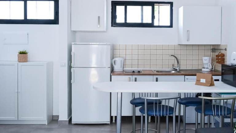 Die Ferienwohnung besteht aus einem Schlafzimmer und einem Wohnzimmer, das mit einer voll ausgestatteten Küche inklusive Kühlschrank und Kaffeemaschine sowie einem Badezimmer mit Dusche und Haartrockner ausgestattet ist. Handtücher und Bettwäsche werden bereitgestellt.