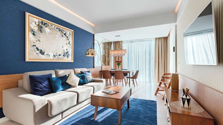 Die Wohneinheiten des Dune Resort Mielno - B sind mit einem Flachbild-TV ausgestattet. Einige Einheiten bieten darüber hinaus einen Sitzbereich und/oder einen Balkon.