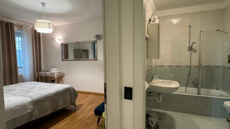 Die Ferienwohnung besteht aus einem Schlafzimmer, einem Wohnzimmer und einer voll ausgestatteten Küche, die mit einem Kühlschrank und einer Kaffeemaschine ausgestattet ist. Zur Unterkunft gehört auch ein Badezimmer mit einem Bidet und einer Dusche. Handtücher und Bettwäsche werden zur Verfügung gestellt.