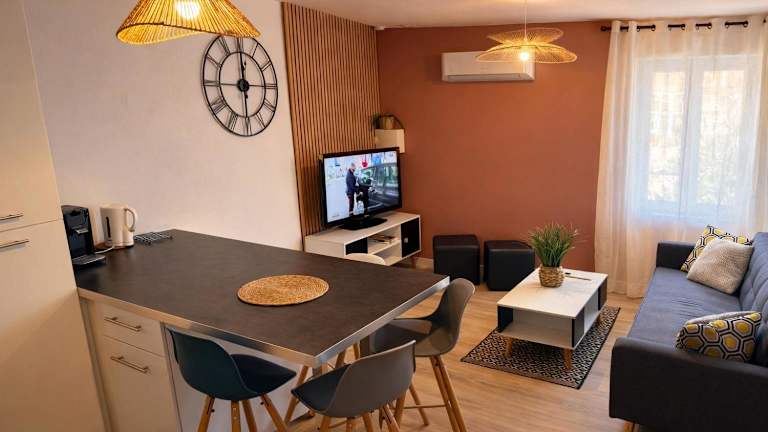 Das Duplex 2 chambres Meximieux centre ville ist eine Nichtraucherunterkunft, die in privater Verwaltung steht. Die Wohnung verfügt über eine Terrasse und einen Gartenblick. Kostenfreies WLAN ist in allen Bereichen verfügbar, und ein privater Parkplatz steht zur Verfügung. Check-in ist zwischen 16:00 und 23:00 Uhr möglich, während der Check-out von 00:00 bis 11:00 Uhr erfolgt.
