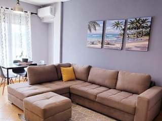Durres Golem Mara beach apartment bietet Übernachtungsmöglichkeiten mit Gartenaussicht, einer Terrasse und einem Balkon in einer ruhigen Umgebung.