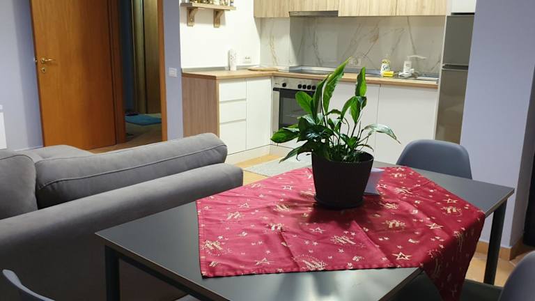 Die Ferienwohnung ist klimatisiert und umfasst ein Schlafzimmer, ein Wohnzimmer, eine voll ausgestattete Küche mit Kühlschrank und Wasserkocher sowie ein Badezimmer mit Bidet und Dusche. Ein Flachbild-TV mit Kabelkanälen gehört ebenfalls zur Ausstattung.