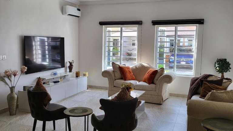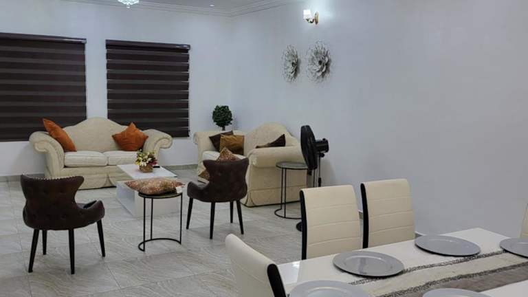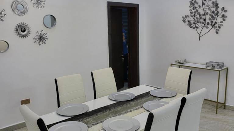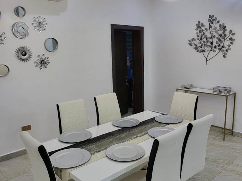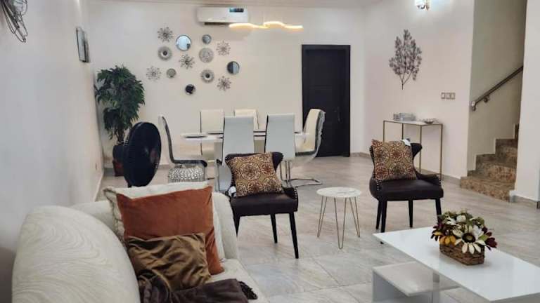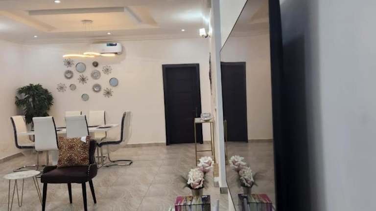Dvyne Lux Home - Off Ikeja ist eine Unterkunft, die einen Außenpool, einen Garten und eine Terrasse bietet. Zusätzlich stehen ein kostenloser Privatparkplatz und kostenfreies WLAN zur Verfügung, was den Gästen einen komfortablen Aufenthalt ermöglicht.
