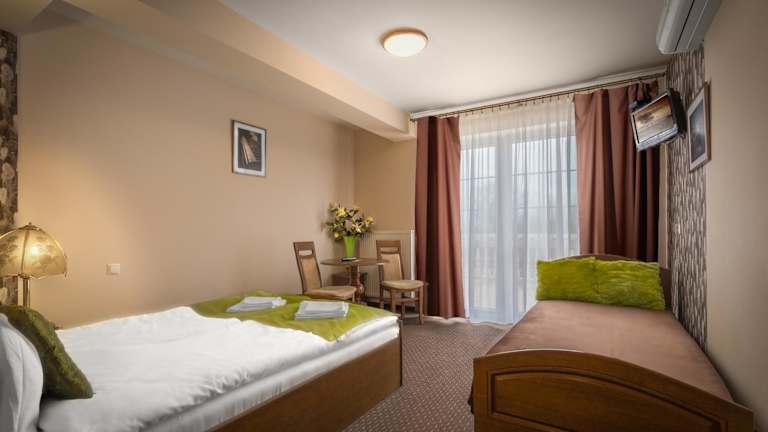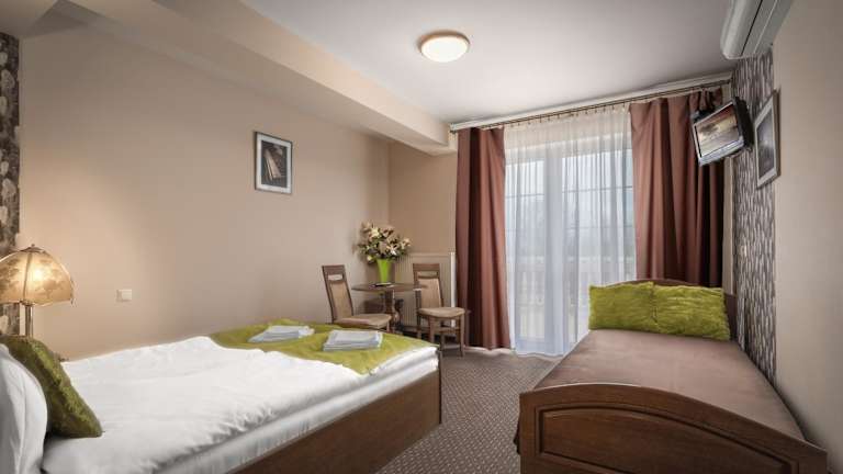 Das Hotelrestaurant mit Bar serviert traditionelle polnische Gerichte. Auf Anfrage sind auch Speisen für spezielle Ernährungsbedürfnisse erhältlich. Zudem wird Essenslieferung in die Unterkunft angeboten.