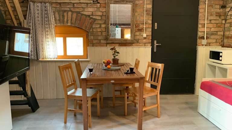 Verbringen Sie einen erholsamen Aufenthalt im DWOREK PRZY ŚWIDWIU - Piętro und genießen Sie den Flussblick von Ihrem Balkon aus. Die Unterkunft bietet geräumige Zimmer, eine voll ausgestattete Küche und kostenfreies WLAN. Entspannen Sie im Garten, spielen Sie eine Runde Tischtennis oder nutzen Sie den Grillbereich. Die Nähe zur Universität Stettin und die Möglichkeit zum Radfahren in der Umgebung machen diesen Bauernhof zu einem idealen Ausgangspunkt für Ihre Erkundungstouren.