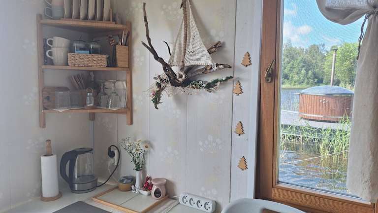Das Boot im Dzintarkrasts bietet eine gemütliche Unterkunft mit einem Schlafzimmer. Handtücher und Bettwäsche sind für Ihren Komfort vorhanden. Das Highlight des Bootes ist die Terrasse mit Seeblick, von der aus Sie die malerische Umgebung genießen können.