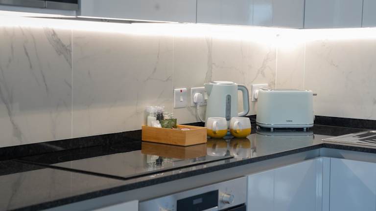 In der Unterkunft wird ein à la carte Frühstück angeboten. Zudem steht den Gästen eine voll ausgestattete Küche in den Suiten zur Verfügung, die über einen Kühlschrank, einen Ofen, eine Mikrowelle, eine Herdplatte, einen Toaster, eine Kaffeemaschine und einen Wasserkocher verfügt.